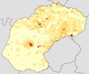 | Keywords: Free State 2011 population density map.svg ffffcc <1 inhabitant/km² ffeda0 1 “3 inhabitants/km² fed976 3 “10 inhabitants/km² feb24c 10 “30 inhabitants/km² fd8d3c 30 “100 inhabitants/km² fc4e2a 100 “300 inhabitants/km² e31a1c 300 “1000 inhabitants/km² bc0026 1000 “3000 inhabitants/km² 800026 >3000 inhabitants/km² Projection is Albers Equal-Area Conic with standard parallels at 25 5° S and 31 5° S and origin at 28 5° S 25 5° E Statistics South Africa's Census 2011 is the source of the basic population data The map results from my own processing of the data Htonl 2013-10-22 http //beta2 statssa gov za/ page_id 425 The following license applies to the population data on which the map is based the user acknowledges Stats SA as the source of the basic data wherever they process apply utilise publish or distribute the data and also that they specify that the relevant application and analysis where applicable result from their own processing of the data The following tag applies to the map itself Demographic maps of South Africa Maps of the Free State |