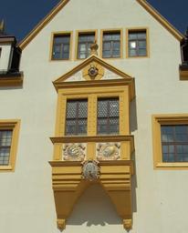Keywords: freiberg mountain town town hall bay window decorated stucco façade historically prince robbery building architecture old town restored downtown wealth silbergergbau ore mountains