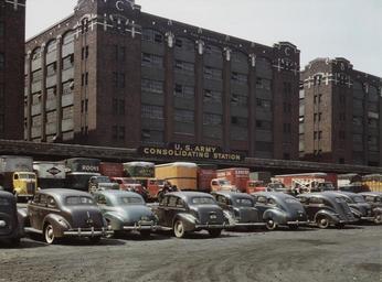 | Keywords: Freight Depot of the US Army consolidating station, Chicago, Illinois fsac.1a34797u.jpg ;TITLE Freight Depot of the U S Army consolidating station Chicago Ill ;CALL NUMBER LC-USW36-632 P P ;REPRODUCTION NUMBER LC-DIG-fsac-1a34797 digital file from original transparency ;LC-USW361-632 color film copy slide ;RIGHTS INFORMATION No known restrictions on publication ;MEDIUM 1 transparency color ;CREATED/PUBLISHED 1943 April ;CREATOR Delano Jack<sup> w </sup> 1914-1997 photographer ;NOTES Transfer from U S Office of War Information 1944 General information about the FSA/OWI Color Photographs is available at http //hdl loc gov/loc pnp/pp fsac Title from FSA or OWI agency caption Additional information about this photograph might be available through the Flickr Commons project at http //www flickr com/photos/library_of_congress/2179240750 ;SUBJECTS Chicago and North Western Railway Company World War 1939-1945 Railroad stations Automobiles Shipping United States--Illinois--Chicago ;FORMAT Transparencies Color ;PART OF Farm Security Administration - Office of War Information Collection 12002-13 ;REPOSITORY Library of Congress Prints and Photographs Division Washington D C 20540 USA http //hdl loc gov/loc pnp/pp print ;DIGITAL ID digital file from original transparency fsac 1a34797 http //hdl loc gov/loc pnp/fsac 1a34797 ;CONTROL fsa1992001021/PP loc-image fsac 1a34797 PD-USGov-FSA PD-USGov 1943 in Chicago Automobiles in Chicago FSA-OWI Jack Delano Chicago and North Western Transportation Company Facilities of the United States Army |