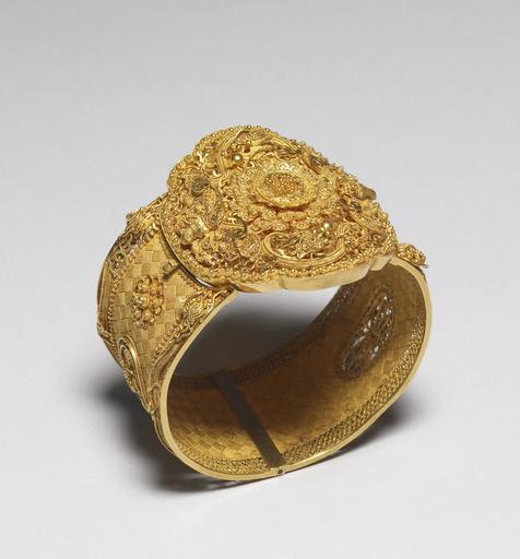 | Keywords: French - Cannetille Ware Bracelet - Walters 572332 - Three Quarter.jpg This bracelet is emblematic of Chinese filigree work that was produced for the European market in the mid-19th century It has been mis-attributed as being French cannetille however the style the shape of the medallion the dragon and phoenix motif all indicate Chinese craftsmanship most likely completed in Singapore in the mid- to late- 1800s between 1840 1860 gold cm 5 08 6 35 accession number 57 2332 77180 Mr George Harold Edgell date and mode of acquisition unknown Mrs Jean Walters Delano Edgell date and mode of acquisition unknown Mr Henry Walters Edgell Manchester New Hampshire date and mode of acquisition unknown Mrs Elizabeth Edgell February 9 1986 by gift from her husband Mr Henry Walters Edgell Walters Art Museum Gift of Mrs Elizabeth Edgell 2010 Bedazzled 5 000 Years of Jewelry from the Walters Art Museum Frist Center for the Visual Arts Nashville; The John and Mable Ringling Museum of Art Sarasota; The Walters Art Museum Baltimore 2006-2009 place of origin China or Singapore Walters Art Museum license Bracelets Jewellery of France Gold jewellery Jewellery in the Walters Art Museum Art of France in the Walters Art Museum Filigree |