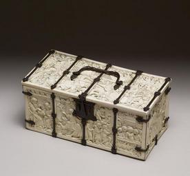 | Keywords: French - Casket with Scenes of Romances - Walters 71264 - Three Quarter Top.jpg This splendid casket is carved with scenes from romances and allegorical literature representing the courtly ideals of love and heroism In the center of the lid knights joust as ladies watch from the balcony; to the left knights lay siege to the Castle of Love the subject of an allegorical battle The remaining scenes on the casket are drawn from well-known stories about Aristotle and Phyllis Tristan and Iseult and tales of the gallant heroic deeds of Gawain Galahad and Lancelot The box may originally have been a courtship gift between 1330 1350 Medieval ivory with modern iron mounts cm 11 8 25 2 12 9 accession number 71 264 5780 Rev John Bowle Wiltshire prior to 1757 Gustavus Brander Christchurch Hampshire prior to 1787 mode of acquisition unknown Francis Douce London prior to 1824 mode of acquisition unknown Sir Samuel Rush Meyrick Goodrich Court Herefordshire prior to 1836 mode of acquisition unknown Lt Col Augustis Meyrick 1848 by inheritance Frédéric Spitzer Paris by purchase Sale Paul Chevallier and Charles Mannheim April 17 1893 no 114 Oscar Hainauer Berlin prior to 1897 mode of acquisition unknown Hector Economos Paris prior to 1913 mode of acquisition unknown Henri Daguerre Paris after 1913 mode of acquisition unknown Arnold Seligmann Rey and Co Paris date and mode of acquisition unknown Henry Walters city Baltimore Walters Art Museum Henry Walters Acquired by Henry Walters 1923 Ivory The Sumptuous Art The Walters Art Gallery Baltimore 1983-1984 The Taste of Maryland Art Collecting in Maryland 1800-1934 The Walters Art Gallery Baltimore 1984 Plants and Flowers in Medieval Manuscripts The Walters Art Gallery Baltimore 1991 Medieval Games of Love and War The Walters Art Gallery Baltimore 1995-1996 Images in Ivory Precious Objects of the Gothic Age The Detroit Institute of Arts Detroit; The Walters Art Gallery Baltimore 1997 Vive la France French Treasures from the Middle Ages to Monet The Walters Art Gallery Baltimore 1999-2000 The Book of Kings Art War and the Morgan Library's Medieval Picture Bible The Walters Art Museum Baltimore; Academy of the Arts Easton Easton; Princeton University Art Museum Princeton; The Mitchell Gallery Annapolis; Williams College Museum of Art Williamstown 2002 Romance of the Rose Visions of Love in Illuminated Medieval Manuscripts The Walters Art Museum Baltimore 2009 place of origin Paris France Walters Art Museum license Casket with Scenes of Romances - Walters 71264 Art of France in the Walters Art Museum Media contributed by the Walters Art Museum needs category review Vive la France French Treasures from the Middle Ages to Monet |