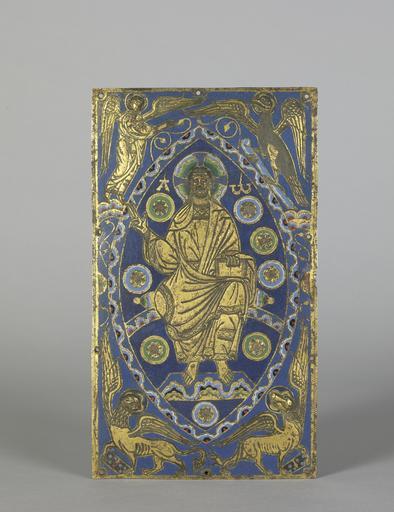 Keywords: French - Christ in Majesty - Walters 4485.jpg Originally paired with an image of the Crucifixion this plaque was once attached to the binding of a Gospel book or a missal When the book was read aloud during the liturgy its enameled covers would have reminded the faithful of Christ's earthly suffering and heavenly glory The son of God sits upon a rainbow surrounded by four creatures that symbolize the Evangelists The Greek letters alpha and omega that flank Jesus' head refer to his words See I am coming soon; my reward is with me to repay according to everyone's work I am the Alpha and the Omega the first and the last the beginning and the end Revelation 22 12-13 ca 1200 Medieval champlevé enamel copper gilt cm 23 13 2 accession number 44 85 24158 Raoul Heilbronner Paris date of acquisition unknown by purchase Henry Walters city Baltimore Walters Art Museum Henry Walters Acquired by Henry Walters 1910 Realms of Faith Medieval and Byzantine Art from the Walters Art Museum Frist Center for the Visual Arts Nashville 2001-2002 Realms of Faith Medieval and Byzantine Art from the Walters Art Museum Frist Center for the Visual Arts Nashville 2002-2005 Illuminating the Word Gospel Books in the Middle Ages The Walters Art Museum Baltimore 2004 Realms of Faith Medieval and Byzantine Art from the Walters Art Museum Museum of Biblical Art New York; Colby College Museum of Art Waterville; Joslyn Art Museum Omaha 2008-2009 place of origin Limoges France Walters Art Museum license Medieval metalwork in the Walters Art Museum Art of France in the Walters Art Museum Media contributed by the Walters Art Museum needs category review Gospel Books covers from France Limoges champlevé |