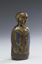 | Keywords: French - Figure of a Deacon - Walters 4418 - Three Quarter Right.jpg This relief figure resembles a statuette now in the church of Les Billanges western France Both figures hold a rectangular object upright against their chest that has been identified as a reliquary of the True Cross representing that sent to the nearby Abbey of Grandmont by King Amaury of Jerusalem r 1162-74 Like the French statuette this example was part of a monument that once graced the church of Grandmont perhaps a monumental cross or an altar frontal Grandmont was a religious foundation established by St Stephen of Muret ca 1044-1125 A number of enamels survive from the main church and its dependencies between 1230 1239 Medieval gilded copper repoussé engraved and chased champlevé enamel cm 13 5 5 accession number 44 18 3732 Henry Walters Baltimore date and mode of acquisition unknown Walters Art Museum Henry Walters Acquired by Henry Walters Reliquaries and Ritual Medieval Objects of Devotion The Walters Art Gallery Baltimore 1984-1985 Realms of Faith Medieval and Byzantine Art from the Walters Art Museum Frist Center for the Visual Arts Nashville 2001-2002 Realms of Faith Medieval and Byzantine Art from the Walters Art Museum Frist Center for the Visual Arts Nashville 2002-2005 place of origin Limoges France Walters Art Museum license Medieval metalwork in the Walters Art Museum Champlevé of Europe Art of France in the Walters Art Museum Media contributed by the Walters Art Museum needs category review |