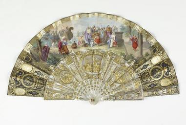 | Keywords: French - Folding Fan and Case - Walters 866 - Back.jpg Beginning in the late 17th century rigid fans were replaced by folding fans They were usually made of light materials such as paper or parchment mounted on sticks of ivory tortoiseshell or wood Fan painters often depicted historical particularly classical scenes such as this example in which the subject is an audience before a king ca 1760 watercolor and gilding on paper mother-of-pearl velvet case cm 27 2 51 accession number 86 6 5176 Henry Walters Baltimore date and mode of acquisition unknown Walters Art Museum Henry Walters Acquired by Henry Walters Bedazzled 5 000 Years of Jewelry from the Walters Art Museum Frist Center for the Visual Arts Nashville; The John and Mable Ringling Museum of Art Sarasota; The Walters Art Museum Baltimore 2006-2009 place of origin France Walters Art Museum license 3D Art of France in the Walters Art Museum French paintings in the Walters Art Museum Media contributed by the Walters Art Museum needs category review Fans of France |
