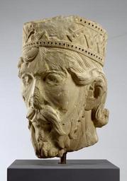 | Keywords: French - Head of an Old Testament King - Walters 2721 - Three Quarter.jpg Sculptural innovation of the Gothic period can be seen in this head of an Old Testament monarch carved for the carved for the abbey church of Saint-Denis outside Paris The head from a pier column figure on the building's west façade represents the transition between the abstraction and solidity characteristic of the eleventh and earlier twelfth centuries often called the Romanesque period and the increased interest in naturalism seen from the later twelfth century through the end of the medieval period Although this example is by no means a realistic representation of the human figure the sculptor has incorporated elements based on the observation of nature such as the softly rounded contours of the face and the wavy curls of hair This interest in naturalism continued to develop through the later Middle Ages and the early modern period When this sculpture was in situ the feet of the full-length figure would have been at about the height of a viewer's head and the monarch would have stared down at the viewer his crown robe and eyes brightly painted and adorned with inset glass and metal The heads of the jamb figures were removed from the portal in the late eighteenth century just before the royal burial church became a target of vandalism during the French Revolution ca 1140 Medieval limestone cm 36 5 23 22 3 accession number 27 21 28513 Abbey of St Denis Paris said to be a head from a west façade portal jamb statue Raoul Heilbronner Paris date and mode of acquisition unknown Dikran Kelekian Paris date and mode of acquisition unknown Henry Walters city Baltimore Walters Art Museum Henry Walters Acquired by Henry Walters 1911 The Royal Abbey of St Denis at the Time of Abbot Suger 1125-1151 The Metropolitan Museum of Art New York 1981 Highlights from the Collection The Walters Art Gallery Baltimore 1998-2001 Vive la France French Treasures from the Middle Ages to Monet The Walters Art Gallery Baltimore 1999-2000 Set in Stone The Face in Medieval Sculpture The Metropolitan Museum of Art New York 2006-2007 place of origin Abbey Church of Saint-Denis in Saint-Denis France Walters Art Museum license Medieval art in the Walters Art Museum Art of France in the Walters Art Museum Media contributed by the Walters Art Museum needs category review Vive la France French Treasures from the Middle Ages to Monet |