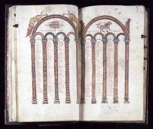 | Keywords: French - Leaf from Gospels - Walters W313V - Open Group.jpg Frence late Other date century 10 Medieval ink paint parchment cm 31 18 accession number W 3 13V 35994 Abbey Saint-Benoit-sur-Loîre Fleury late 10th century Léon Gruel Paris prior to 1903 mode of acquisition unknown Henry Walters city Baltimore Walters Art Museum Henry Walters Acquired by Henry Walters 1903 place of origin Fleury France Walters Art Museum license 2D Walters MS W3 - Gospels Canon tables Cancer astrology Leo astrology |