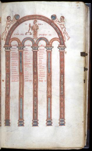 Keywords: French - Leaf from Gospels - Walters W315R - Open Obverse.jpg Frence late Other date century 10 Medieval ink paint parchment cm 31 18 accession number W 3 15R 3129 Abbey Saint-Benoit-sur-Loîre Fleury late 10th century Léon Gruel Paris prior to 1903 mode of acquisition unknown Henry Walters city Baltimore Walters Art Museum Henry Walters Acquired by Henry Walters 1903 place of origin Fleury France Walters Art Museum license 2D Walters MS W3 - Gospels Canon tables Libra astrology