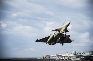 | Keywords: French Navy Rafale M performs touch and go landings on the USS Dwight D. Eisenhower (2).jpg en MEDITERRANEAN SEA Dec 8 2016 A French navy Rafale Marine aircraft from the aircraft carrier FS Charles De Gaulle R91 performs a touch and go landing on the aircraft carrier USS Dwight D Eisenhower CVN 69 Ike Ike currently deployed as part of the Eisenhower Carrier Strike Group is conducting naval operations in the U S 6th Fleet area of operations in support of U S national security interests in Europe U S Navy photo by Petty Officer 3rd Class Nathan T Beard 2016-12-07 19 00 00 https //www dvidshub net/image/3046133/161208-n-qi061-569 US Navy other versions PD-USGov 28 aircraft 2016 in aviation in France Flight deck of USS Dwight D Eisenhower CVN-69 Touch-and-go |