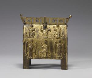 | Keywords: French - Reliquary Shrine with Scenes from the Life of Christ - Walters 444 - Side A.jpg One long side of this shrine shows the Massacre of the Innocents with the dog-faced Devil counseling the enthroned King Herod at the far right of the lower panel Above the Virgin and Child are led by Joseph toward an open gateway to flee into Egypt from the slaughter shown behind and below them The opposite long side has cast figures of Christ enthroned between Apostles John and James above and the Virgin with the Christ Child in her lap between Archangels Raphael and Gabriel below The Annunciation is displayed on one end The shrine has lost its wooden core as well as the door that once sealed the relics inside middle Other date century 13 Medieval champlevé enamel on copper with gilding cm 24 23 5 8 5 accession number 44 4 24165 From Toulouse archives of Brimo de Laroussilhe Brimo de Laroussilhe Paris by purchase Henri Daguerre Paris by purchase Henry Walters city Baltimore Walters Art Museum Henry Walters Acquired by Henry Walters 1928 Inscribed on band along the roof of the chasse on Christ Enthroned side SCS IA/COBUS SALVA/TOR MUNDI / SCS IOHS ; Transcription SANCTUS IA/COBUS SALVA/TOR MUNDI / SANCTUS IOHANNES ; Translation Saint James the Savior of the World Saint John Inscribed on band along top of the lower panel on Christ Enthroned side SCS/ MICAEL SCA/ MARIA SCS G/ABRIEL; Transcription SANCTUS/ MICHAEL SANCTA/ MARIA SANCTUS G/ABRIEL; Translation Saint Michael Saint Mary Saint Gabriel Reliquaries and Ritual Medieval Objects of Devotion The Walters Art Gallery Baltimore 1984-1985 place of origin Limoges France Walters Art Museum license Medieval metalwork in the Walters Art Museum Champlevé of Europe Limoges champlevé Medieval reliquaries Art of France in the Walters Art Museum |