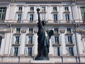 Keywords: french riviera france nice promenade des anglais statue of liberty shutters building