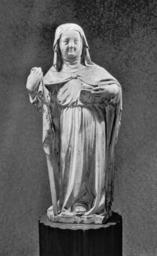 | Keywords: French - Saint Bridget of Sweden - Walters 27443.jpg Saint Bridget ca 1303-1373 was canonized for her great piety and her exemplary dedication to the poor Her greatest influence however was through her writings recording her visions of Christ These widely-circulated accounts-represented here by the book she carries-provided artists especially in northern Europe with sources for their imagery The remarkable suggestion of soft skin and mouth humanize the saint This treatment is a fine reflection of how 15th-century artists conveyed the new interest in inner spiritual states through a naturalistic rendering of surface characteristics In addition the large head and small lower portions of this figure suggest that it was meant to be seen from below ca 1430 1460 Late Medieval limestone with traces of paint cm 62 3 29 21 accession number 27 443 9626 Dikran Kelekian Paris and New York Henry Walters city Baltimore Walters Art Museum Henry Walters Acquired by Henry Walters 1921 place of origin France Walters Art Museum license Medieval art in the Walters Art Museum Renaissance sculpture in the Walters Art Museum Art of France in the Walters Art Museum Media contributed by the Walters Art Museum needs category review |