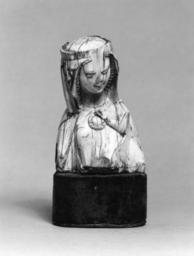 | Keywords: French - Virgin and Child - Walters 71285.jpg This fragment of the Virgin's head and bust is from a large standing statuette She wears a head cloth retained by a band that is designed to receive a metal crown She also wears a large ring brooch for which the Child reaches Traces of gilt patterns appear on the neck of the dress and the edges of the mantle The statuette is cut off at the waist and has a chipped and ragged lower edge The Christ Child is missing except for his right arm A wedge of ivory has flaked off in the center of the Virgin's face destroying her nose It is difficult to date this piece accurately since it lacks the characterisitic lower parts of the drapery but the narrow eyes and expression of the mouth suggest a date in the late 13th century 4th quarter 13th century Medieval ivory cm 10 8 accession number 71 285 10503 Mme L Stern Collection Paris date and mode of acquisition unknown Henri Daguerre Paris 1923 mode of acquisition unknown Henry Walters city Baltimore Walters Art Museum Henry Walters Acquired by Henry Walters 1923 place of origin Paris France Walters Art Museum license Medieval ivory in the Walters Art Museum Art of France in the Walters Art Museum Media contributed by the Walters Art Museum needs category review Sculptures of Madonna and Child |