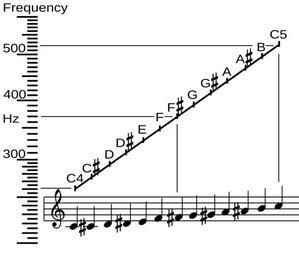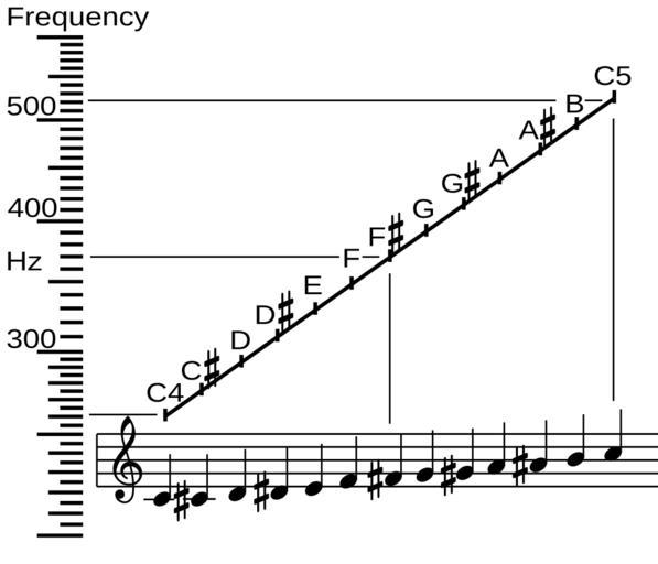 Keywords: Frequency vs name.svg en wikipedia 2008-06-30 Original uploader was Jono4174 at http //en wikipedia org en wikipedia Jono4174 Original upload log en wikipedia Frequency_vs_name svg 2008-07-01 05 49 Jono4174 350×300× 90913 bytes <nowiki>Frequency on a logarithmic scale vs Position on Treble Clef</nowiki> 2008-06-30 09 24 Jono4174 350×300× 89456 bytes <nowiki>Frequency vs name and position on treble clef by Wikipedia user</nowiki> Musical scales Sheet music Music diagrams |