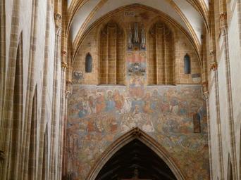 Keywords: fresco quire arch interior building architecture gothic the most recent court ulm cathedral mural door secret door opening ulm iconography late middle ages all saints iconography