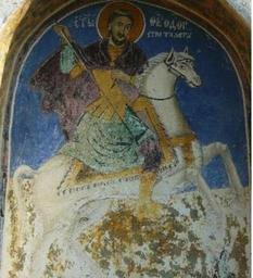 | Keywords: Freska na Teodor Tiron od Rakitnica.jpg Ф еска на Теодо Ти он в цъ квата Свети Димитъ в Ракитница mk Ф еска на Теодо Ти он во ц квата Св Димит иј во Ракитница http //dhgalerija com/images/stories/rakitnica 20ikona jpg cropped from here author < 1900 St Demetrious Church Rakitnica PD-Macedonia PD-Art |