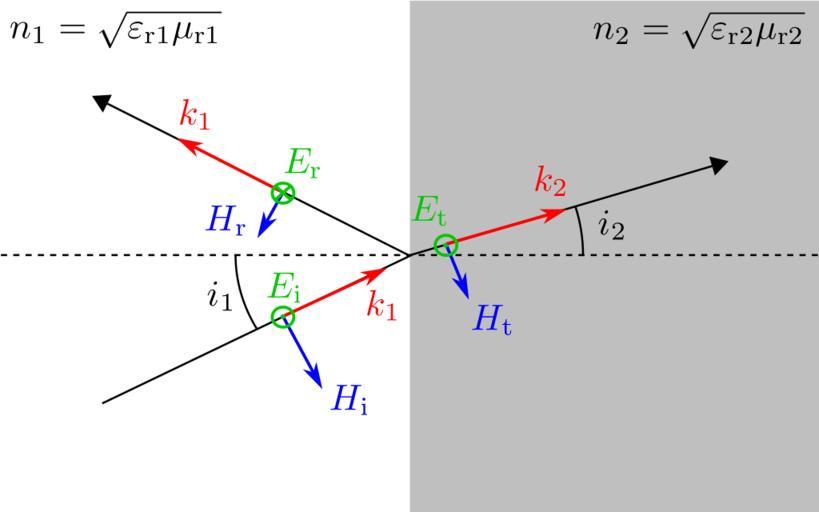 | Keywords: Fresnel-equations-sketch-ET-none.svg Fresnel equations sketch of incident reflected and transmitted waves for transverse magnetical polarisation Are drawn and labelled electric fields E and magnetic fields B as well as angles with the normal wave numbers and refracting indices Coefficients de Fresnel schéma des ondes incidente réfléchie et transmise pour la polarisation magnétique transverse Sont indiqués les champs électriques E et magnétiques B ainsi que les angles d'incidence et de réfraction les nombres d'onde et les indices de réfractions Fresnelsche Formeln Skizze der einfallenden reflektierten und transmittierten Wälen für eine parallele Polarisation Wureden gezeichnet die elektrische E and magnetische B Felder Winkel Wälennummer und Brechungsindexe Editted from Image Fresnel-equations-sketch-ET-fr svg Brachycerophilia User Tttrung 2008-06-02 2008-10-09 Fresnel equations diagrams Created with Inkscape |