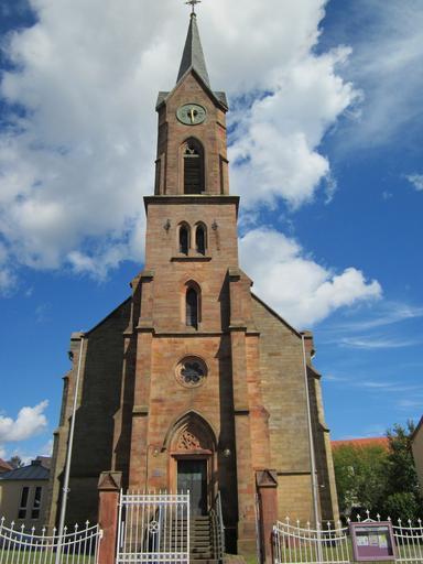 Keywords: friedenskirche kirkel church building tower front steeple spire facade exterior religious historic architecture