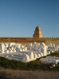 Keywords: Friedhof mit Minarett.JPG Friedhof mit Minarett Foto Orientalist 2006-11-19 own assumed Orientalist~commonswiki Awlad Farhan Cemetery Minaret of the Great Mosque of Kairouan City walls of Kairouan