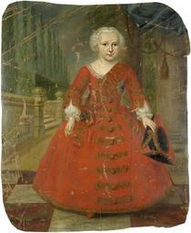 | Keywords: Friedrich der Große als Kind.jpg Bildnis Friedrich der Große als Kind laut altem Klebeetikett mit Dreispitz und schwarzem Adler-Orden vor einem Palastgarten century 18 Oil on canvas cm 115 94 unknown http //www bassenge com PD-old-100 DEFAULTSORT 1714c; Friedrich II of Prussia Images from Galerie Bassenge 18th-century unidentified painters from Germany 18th-century portrait paintings location missing Friedrich II of Prussia as child 1710s portrait paintings Male 18th-century oil portraits of boys at full length Blue drapery in portrait paintings Paintings of boys' dresses Checkered floors in portrait paintings Portrait paintings of standing boys Portrait paintings of men holding tricorne hats Red clothing in art male Sash of the Order of the Black Eagle in portrait paintings Tassels in portrait paintings |