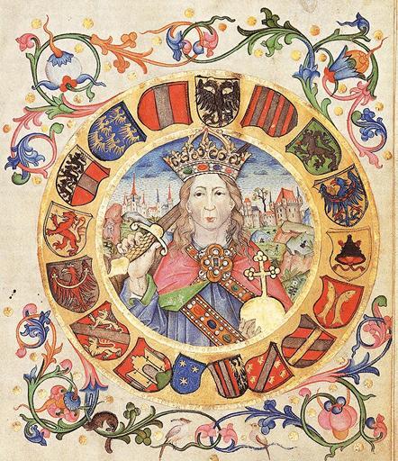 | Keywords: Friedrich III. (Greiner Marktbuch).jpg Friedrich III Miniatur im Greiner Marktbuch Scan aus Rudolf Lehr “ Landeschronik Oberösterreich Wien Verlag Christian Brandstätter 2004 S 103 ISBN 3-85498-331-X author ~ 1490 PD-old-100 Frederick III Holy Roman Emperor 15th-century illuminated manuscripts History of Grein Males with swords in art Medieval miniatures of historical persons Illuminated archival materials Historical coats of arms of Austria Coats of arms of Austria to be classified Coats of arms in medieval miniature |