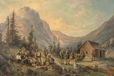 | Keywords: Friedrich Zeller Rast nach der Gemsenjagd 1872.jpg Rast einer Jagdgesellschaft nach der Gemsenjagd F Zeller signature lower right 1 872 date Salzburg place oil on canvas ca 55 x 82 cm http //www dorotheum com/ Dorotheum 1872 Friedrich Fritz Zeller 1817 “1896 PD-old Images from Dorotheum Friedrich Zeller Hunting in art 1872 paintings |