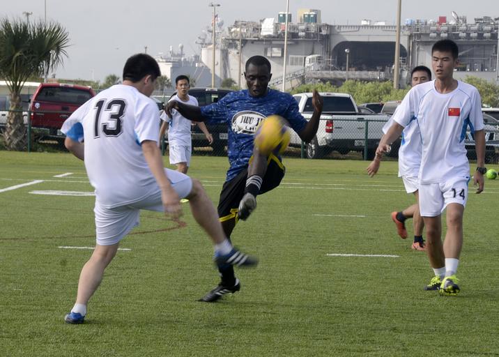 | Keywords: Friendly soccer match 151105-N-QW594-100.jpg en 151105-N-QW594-100 JACKSONVILLE Fla Nov 5 2015 -- Sailors from Escort Task Group 1-5-2 of the People's Liberation Army-Navy PLA N squared off against a team of Sailors from USS Iwo Jima LHD 7 in a friendly game of soccer at Naval Station Mayport The sports day activities are part of a five-day visit by three PLA N ships to Mayport Foreign navy ships routinely conduct port visits to Mayport Engagements like this demonstrate a continuous navy to navy bilateral relationship between our two countries U S Navy photo by Mass Communication Specialist 2nd Class Megan Anuci/released Unit Navy Media Content Services DVIDS Tags NMCS; DVIDS Bulk Import 2015-11-05 Yolonda L Williams https //www dvidshub net/image/2274098/friendly-soccer-match 151105-N-QW594-100 2015-11-07 02 36 MAYPORT FL US PD-USGov-Military-Navy Naval Station Mayport USS Iwo Jima LHD-7 Images from US Navy location Iwo Jima Japan Images from DoD uploaded by Fæ |