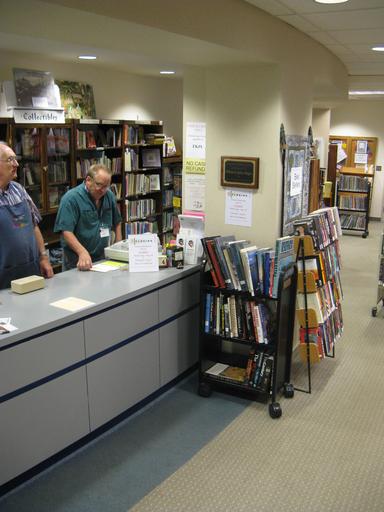 Keywords: indoor table counter shop Friends of Kalamazoo Public Library Bookstore, August 2008. Photo by Keith Howard. Friends of Kalamazoo Public Library Bookstore, August 2008. Photo by Keith Howard.