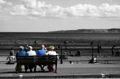 Keywords: friends friend she people woman man couple husbands brothers sisters relaxation beach sea vacation holiday england sitting bench landscape background trip leisure day off memories seasons summer spring