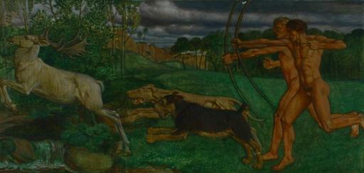 | Keywords: Fritz Boehle - Bogenschützen (1903).jpg Fritz Boehle 1873-1916 1903 technique oil canvas cm 45 6 93 5 object history credit line upper right signature and date accession number http //www reiss-sohn de/frame_buch php page 2 lang deu Reiss Sohn 2011 PD-old-auto-1923 1916 Fritz Boehle Hunting in art Paintings of deer 20th-century paintings of dogs Nude men in art 1903 paintings Nude or partially nude people with dogs | ||||