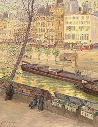 | Keywords: Fritz Westendorp Pariser Büchermarkt.jpg Oil canvas cm 56 44 object history credit line accession number http //www auktionshaus-wendl de/ PD-Art barges in Paris Bouquinistes in Paris 1911 paintings Apricot Paintings of the Seine in Paris Fritz Westendorp Booksellers in art |