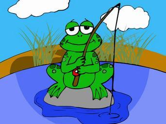 Keywords: frog amphibian fishing fishing rod lake cartoon happy relaxed