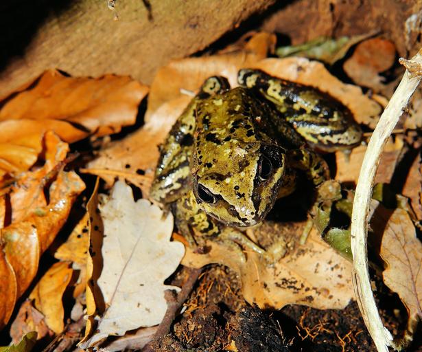 Keywords: frog animal amphibian forest leaves autumn forest floor green scheu cute