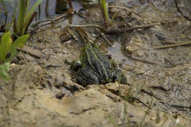 Keywords: frog habitat mud moist lake quagmire muddy disguised camouflage reed amphibian pond swamp wetland swampy nature conservation waters nature reserve nature