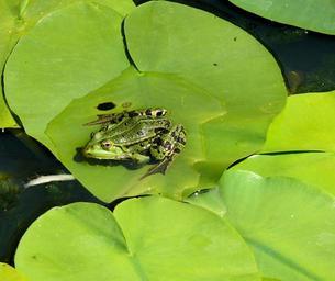 Keywords: frog lily leaf pond green croak garden path