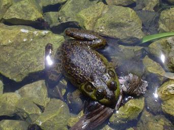 Keywords: frog pond water amphibian green wildlife nature rocks macro outside