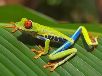 Keywords: frog red eyed tree amphibian tropical macro wildlife rainforest leaf jungle bright cute colorful
