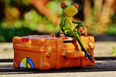 Keywords: frog travel holiday fun funny fig go away animal on the go luggage frogs sweet farewell cute holidays travel fund