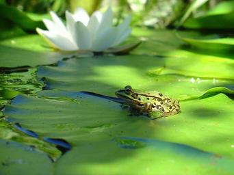 Keywords: frog water lily green pond