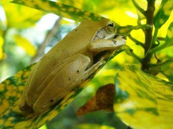 Keywords: frog yellow poison leaf green