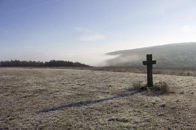 Keywords: frost landscape cross hill fog valley weather view cold nature in the free morning misty land