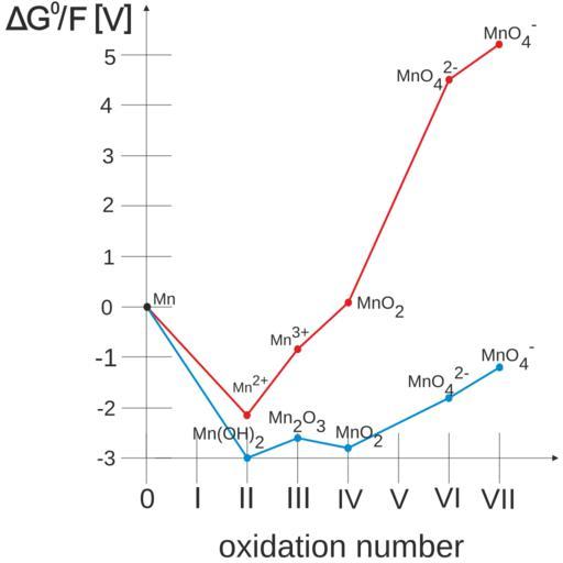 | Keywords: Frost β manganese.svg pl Diagram Frosta dla manganu pH 0 czerwona linia; i pH 14 niebieska linia en Frost diagram for manganese pH 0 red line; and pH 14 blue line 2014-02-01 12 04 20 own based on http //www wou edu/las/physci/ch462/redox htm Diagrams That Provide Useful Oxidation-Reduction Information A BielaΕski Podstawy chemii nieorganicznej T 2 Warszawa PWN 2007 s 907 ISBN 978-83-01-13817-2 Ptjackyll cc-zero Uploaded with UploadWizard Frost diagrams Manganese | ||||