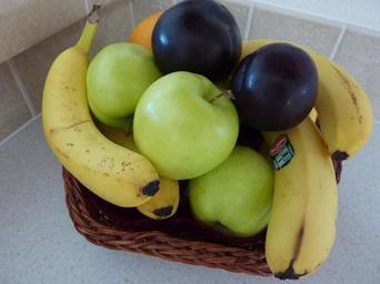 Keywords: fruit basket apples bananas apple food yellow green bunch banana fruits healthy health snack purple plum plums eat edible eating kitchen