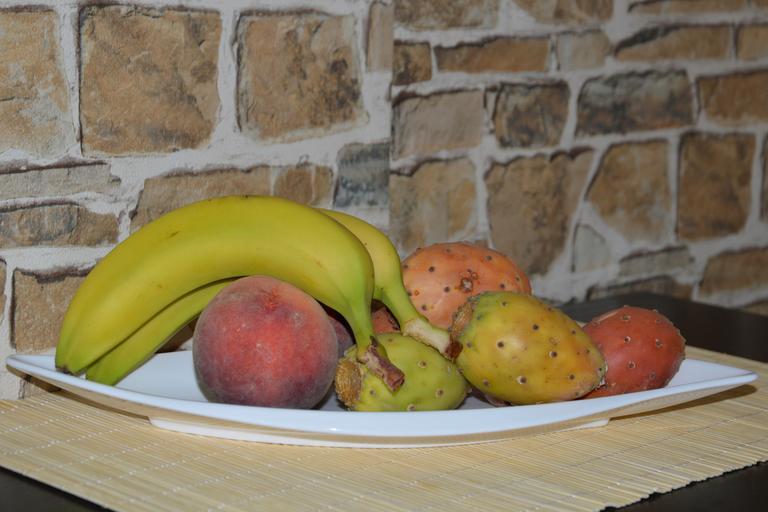 Keywords: fruit fruit bowl fruits bananas peaches prickly pear healthy ripe frisch