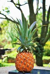 Keywords: fruit pineapple yellow top crown green rough tropical