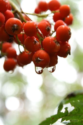 Keywords: fruit rowan tree rain nature plant the stem after the rain drops water the delicacy autumn food red