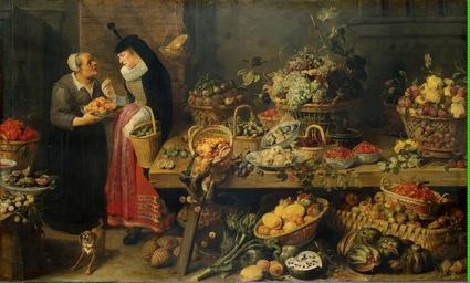 | Keywords: Fruit Stall.jpg en Artist Snyders Frans Location Hermitage Museum Medium Oil Painting on Canvas century 16 http //www oceansbridge com/oil-paintings/product/80312/fruitstall Snyders Frans PD-Art Uploaded with UploadWizard Females with fruits in art |