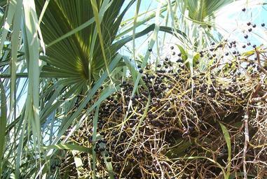 Keywords: Fruitleafcloseup.JPG en Ripe fruit and leaf Own Mmcknight4 2008 Unidentified Sabal