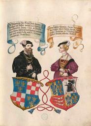 | Keywords: Fugger Ehrenbuch 101.jpg Geheimes Ehrenbuch der Fugger hergestellt in der Werkstatt Jörg Breu d J 1545 “1549<br /> Portrait- und Wappendarstellung Johann Jakob von Mörsperg Freiherr von Belfort und Regina Fugger http //daten digitale-sammlungen de/~db/0004/bsb00042105/images/ 1545 “1549 workshop PD-old-100 Geheimes Ehrenbuch der Fugger Portraits in Geheimes Ehrenbuch der Fugger Coats of arms in Geheimes Ehrenbuch der Fugger Coats of arms of Fugger von Kirchberg und Weißenhorn family Coats of arms of Mörsperg family |
