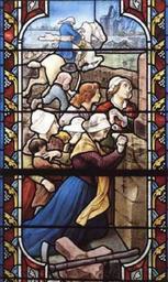 | Keywords: Fuite de Santerre.jpg en Stained glass window of the church in Vihiers representing the flight of republican general Santerre in front of the attack of the royalist armed forces fr Verrière dite de la fuite de Santerre J Clamens vers 1900 en l'église de Vihiers Maine-et-Loire France Fuite du général républicain Santerre acculé à Vihiers par les vendéens http //www loire-france com/histoire/guerres-vendee/vitraux/galerie/pages/vitrail-100 htm Jean Clamens 1900 PD-old Stained glass windows in Maine-et-Loire Vihiers Bataille de Vihiers Jean Clamens Antoine Joseph Santerre 1900 stained glass windows War of Vendée on stained glass windows |