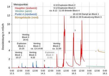 | Keywords: Fukushima Dosis new.svg translation possible Containment-Druckverläufen Strahlungsmesswerten siehe oben Tepco-Webcam-Fotos Die Block-3-Explosion ist wegen Westwind unsichtbar Die Größenverhältnisse zwischen den früheren und den späteren Ereignissen täuschen weil erstere in großer Höhe durch die Schornsteine und über die Messstationen hinweg gingen own PM3 2011-06-12 File Fukushima Dosis qtl1 svg alte Datenbasis File Fukushima I Radiation March 26 png alte Datenbasis bis zum 26 März zusätzliche Erläuterungen der GRS Cc-zero Radiation graphs relating to Fukushima I accidents SVG charts in German |